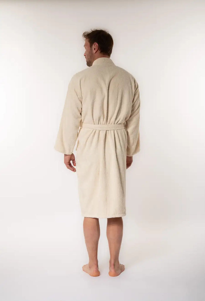Soft Men's Kimono Collar Bathrobe - Cream