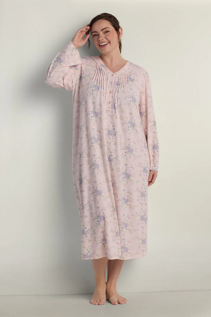 - قميص نوم طويل بتصميم قرص العسل - استمتعي براحة ليلية مع هذا القميص الطويل، المزين بنقشات "بخاخات وردية على النعناع" و"بخاخات أرجوانية على الخوخ". ياقة هنلي أنيقة بتفاصيل دقيقة تُحيط بوجهك بشكل جميل، بينما يوفر التصميم الذي يصل إلى الكاحل تغطية إضافية للأمسيات الباردة. يضمن قماش قرص العسل المميز لدينا راحةً جيدة التهوية بفضل ملمسه الناعم الذي يحافظ على جودته طوال الليل.