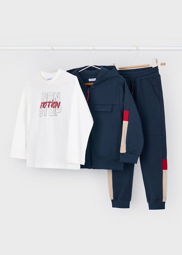 بدلة رياضية من ثلاث قطع للأولاد، تتكون من سويت شيرت، بنطال رياضي، وتيشيرت مطابق. هودي بأكمام طويلة للأولاد. ياقة بغطاء رأس. سحاب أمامي في المنتصف. بنطال للأولاد براحة قصوى. خصر مطاطي برباط قابل للتعديل. عناصر زخرفية: طباعة. باختياركم منتجاتنا القطنية، تدعمون استثمارنا في مبادرة "قطن أفضل". يتم الحصول على "قطن أفضل" من خلال نموذج سلسلة التوريد المعروف باسم "توازن الكتلة". هذا يعني أن "قطن أفضل" لا يمكن تتبعه ماديًا حتى الوصول إلى المنتج النهائي، ومع ذلك، يستفيد مزارعو "قطن أفضل" من الطلب على "قطن أفضل" بكميات تعادل تلك التي نستوردها.