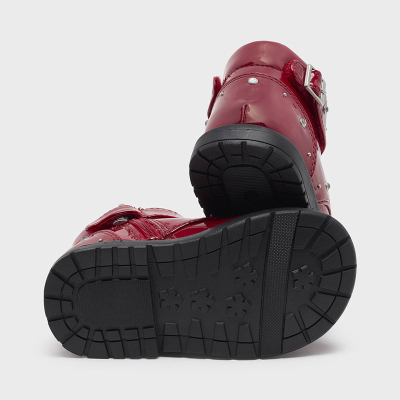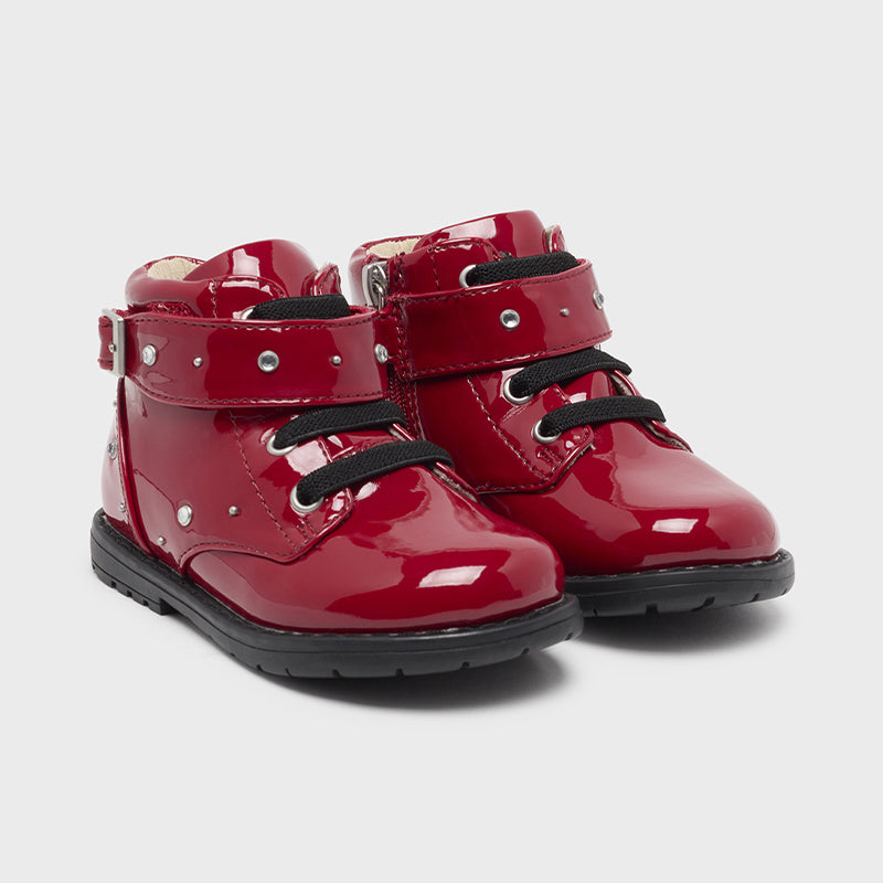 Children's Boots from Mayoral. With elastic laces, velcro and side zip for a perfect fit. The outside is made of synthetic material, while the inside has a fabric lining and a leather sole. With a flexible tread sole that offers maximum comfort and stability. The patent leather gives extra shine and makes your girl's looks unique.