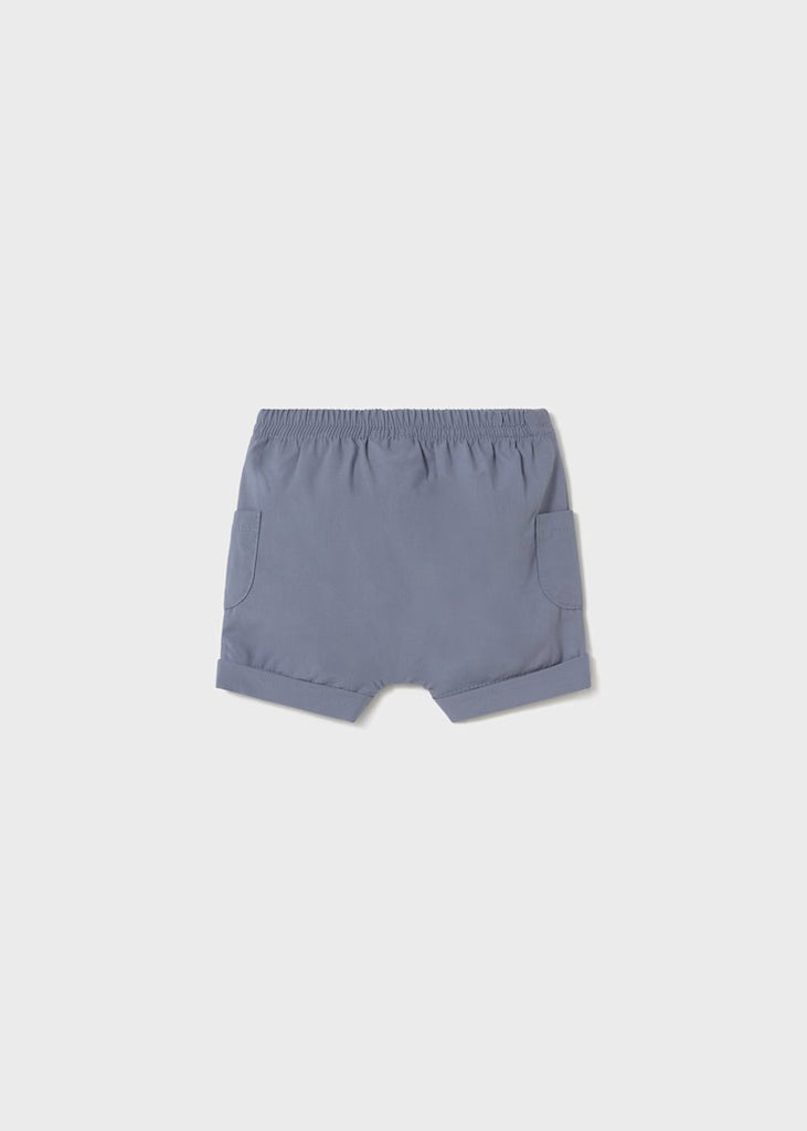 Newborn shorts. Single button closure. Turn-up hem detail. Side pockets.