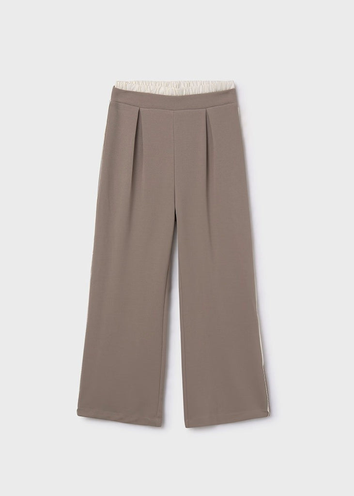 بنطال واسع الساقين بقصّة مريحة وواسعة تدريجيًا من الخصر إلى الحافة. يتميز بحزام خصر مطاطي بلون متباين على شكل بوكسر.