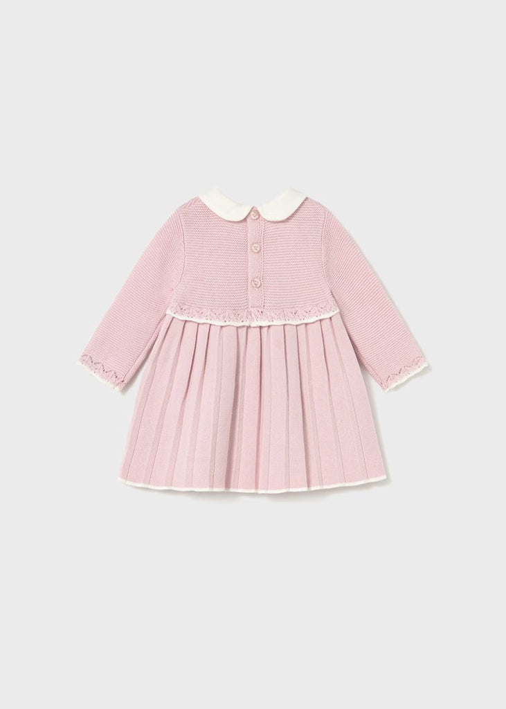 فستان بأكمام طويلة لحديثي الولادة. ياقة بيتر بان. إغلاق بأزرار من الخلف لسهولة الارتداء. قماش محبوك ناعم ومريح. تصميم مطوي. نقش جاكار محبوك.