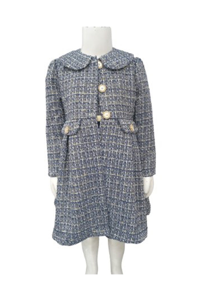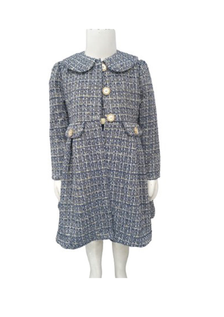 - النمط والتصميم: يجمع بين تصميم الفستان والمعطف الطويل، ويتميز بقصة أنيقة مع تفاصيل كلاسيكية مثل الياقة المستديرة والأزرار الأمامية المزدوجة.