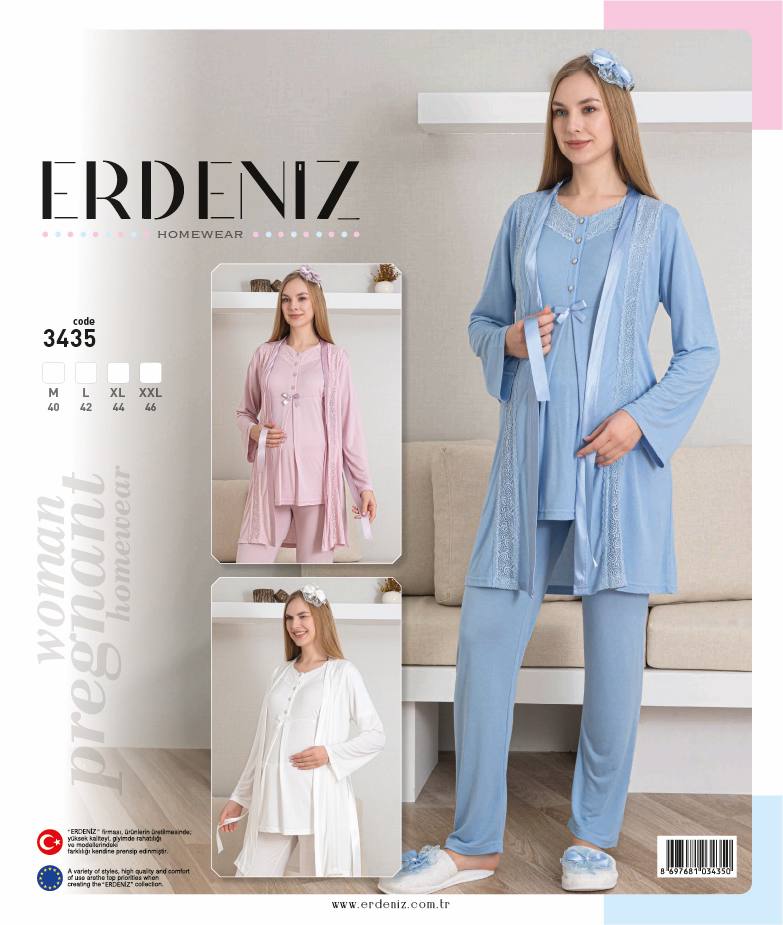 This set, which will adorn the wardrobe of every expectant mother and new mother with its soft texture and elegance, offers both comfort and an aesthetic look. This pajama and dressing gown combination, specially designed for expectant mothers, makes a difference with its unique details. Buttoned nursing collar design suitable for hijab use. Suitable for use before and after pregnancy.