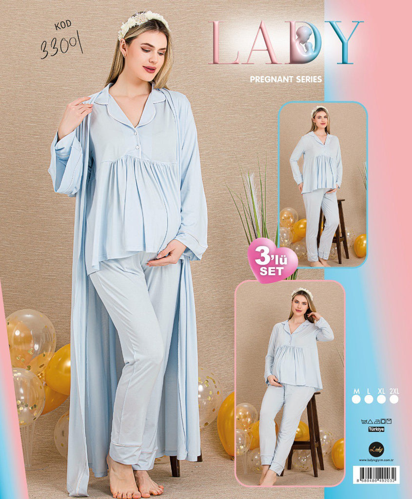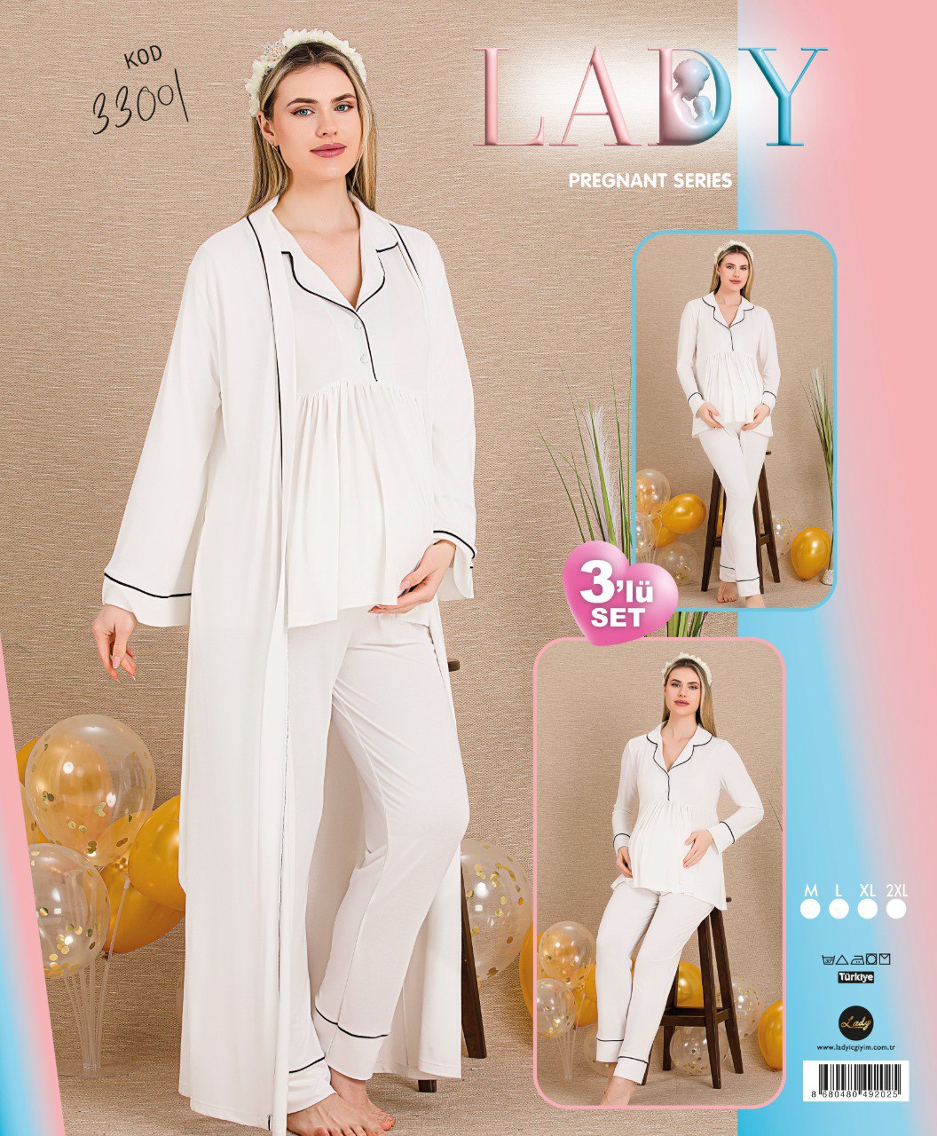Women's 3-piece pajama set with long robe 2008 ( white-blue)