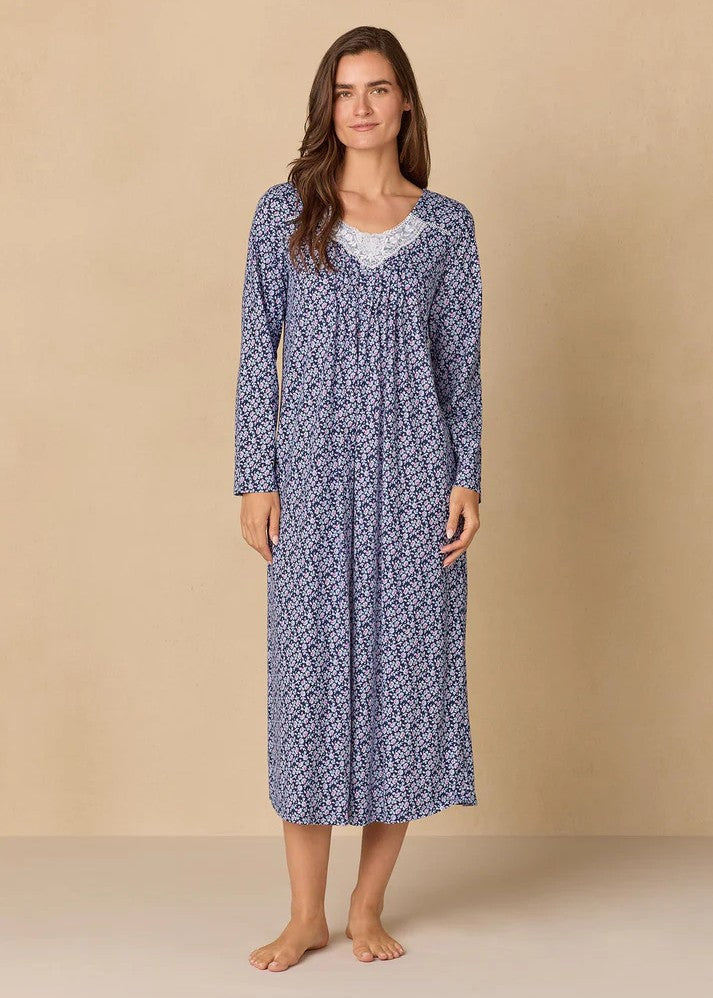 Navy Reverie Ditsy Ballet Cotton Knit Nightgown 02680-401