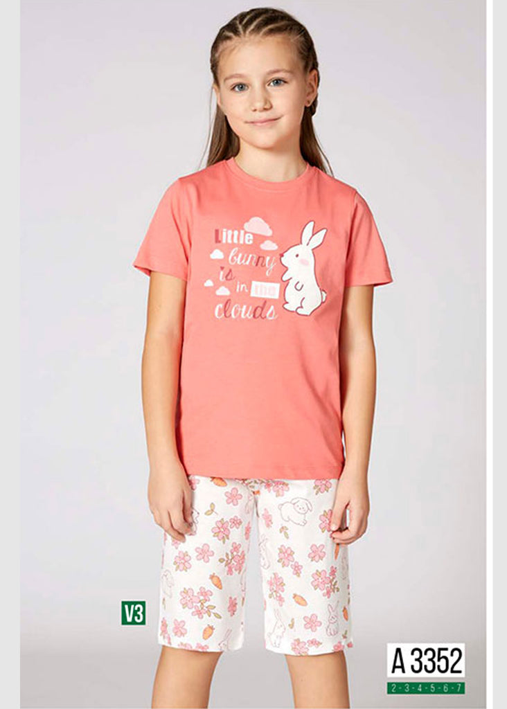 Girls' Cotton Pajamas with Bunny in the Cloud Graphic 3352