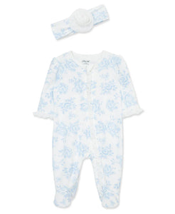 Blue Roses 2-Way-Zip Footed One-Piece And Headband 15472