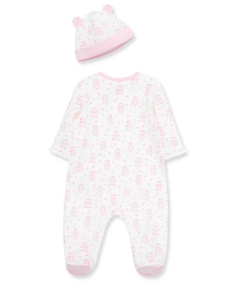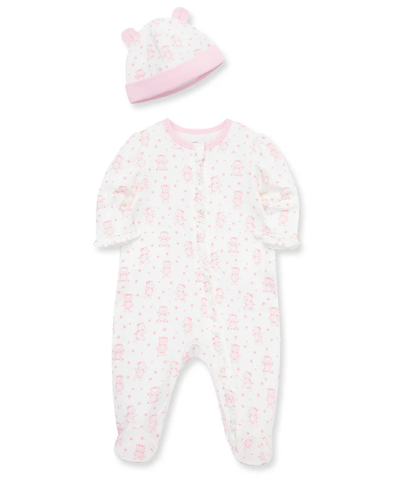 - Baby girl will be bear-y cute in this pink bear and star print zippered footie and hat set.