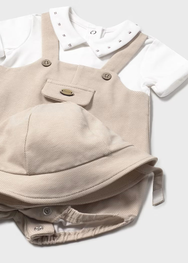 Newborn mock overall romper with hat Ref. 25-01605-050