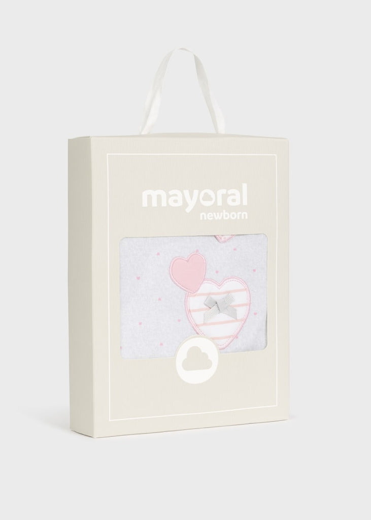 ECOFRIENDS garment, contains sustainable cotton. Long-sleeved pajamas for newborn. Snap button closure on the back to facilitate putting the garment on. Closure with snap buttons in the crotch to facilitate putting the garment on. This item is presented in a box from the Newborn line, ideal for giving away on special occasions. The larger sizes of this model (12 and 18 months) have a non-slip sole.