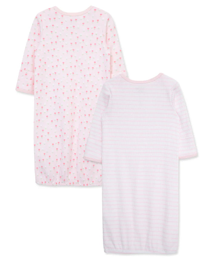 - Tulips and bunnies embellish this newborn baby girls' gowns 2-pack. Made from premium organic cotton, these are a gentle choice for frequent naps and diaper changes!