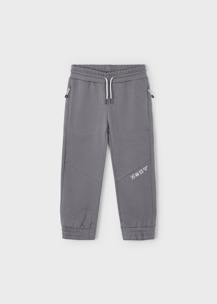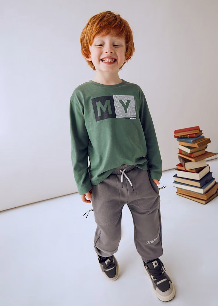 بنطال للأولاد براحة قصوى. خصر مطاطي برباط قابل للتعديل. وسادات ركبة معززة من الداخل لمنع التلف في المنطقة وتوفير مقاومة ومتانة أكبر. حاشية مطاطية لملاءمة أفضل. جيوب بسحابات. عناصر زخرفية: طباعة.