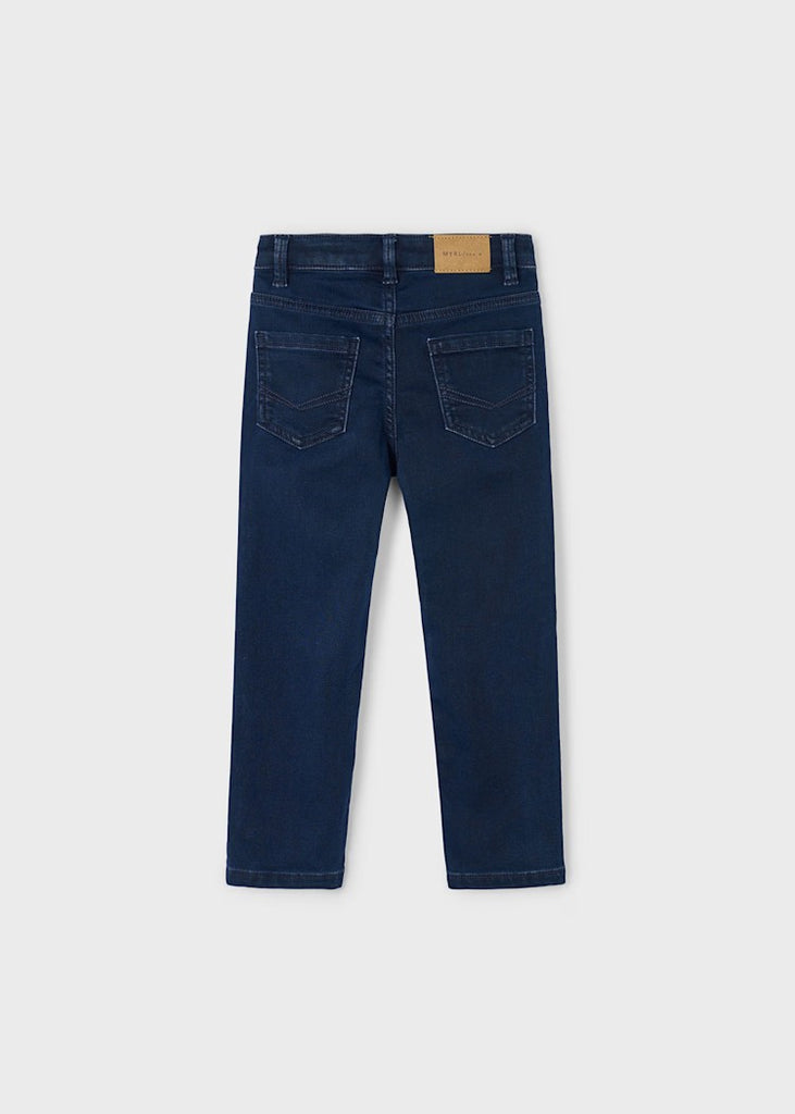 بنطال ضيق للأولاد. سحاب وزر للإغلاق. حزام خصر مطاطي قابل للتعديل مزود بأزرار داخلية لملاءمة مثالية. قماش جينز مريح، مثالي للملابس اليومية. تصميم بجيوب متعددة. لأسباب تتعلق بالسلامة، المقاسات الصغيرة (من سنتين إلى خمس سنوات) بدون سحاب، بل مزودة بسحابات.