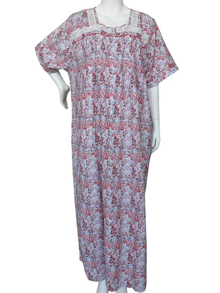Heavyweight pure cotton half-sleeve dress with lace and 30cm zipper 25-08-A-3