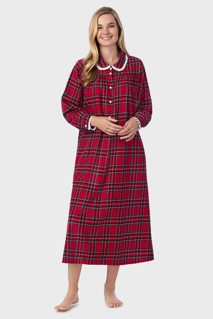 NWT Lanz of Salzburg RED TARTAN Plaid COTTON FLANNEL Peter Pan Nightgown 5616839-644