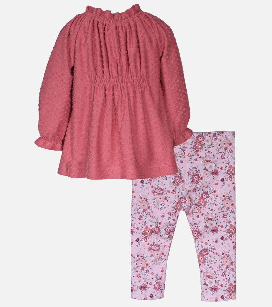 دلّلي طفلتكِ الصغيرة بإطلالة دافئة وأنيقة مع بلوزة بأكمام طويلة منقطة، وبنطال ضيق محبوك بنقشة زهور متناسقة. تتميز البلوزة بخصر مطاطي أنيق وكشكشة عند الرقبة، مما يوفر لها مظهرًا مرحًا ومريحًا في الوقت نفسه، مناسبًا للارتداء اليومي. أما البنطال الضيق الناعم المحبوك بنقشة الزهور، فيضفي لمسة مرحة بفضل طبعته الجريئة، مما يجعل هذه الإطلالة مثالية لأيام الشتاء العادية، سواء كانت طفلتكِ ذاهبة إلى المدرسة أو في نزهة مع صديقاتها.