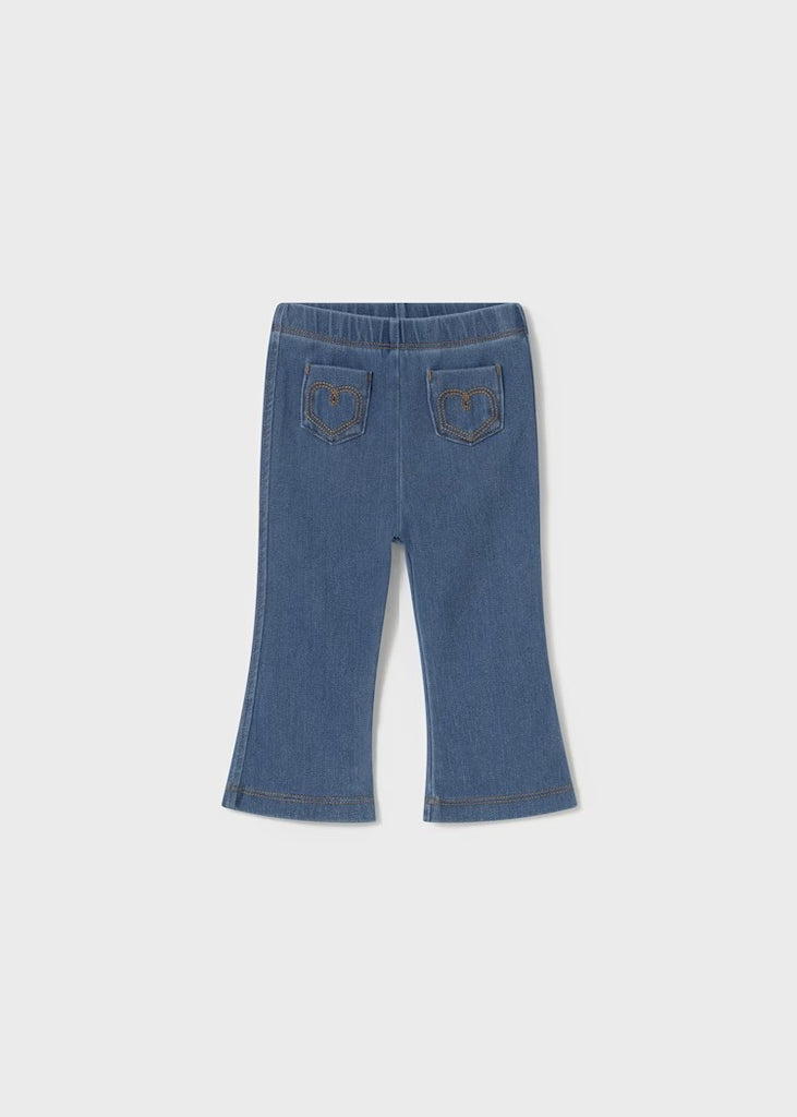 Baby pants with a slim fit through the hips and knees and a flared hem. Regular rise. Elastic waistband. Functional back pockets.