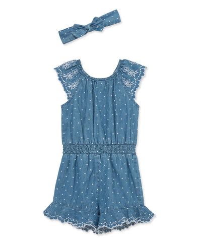 Chambray Woven Romper & Headband (12M-4T) 16064