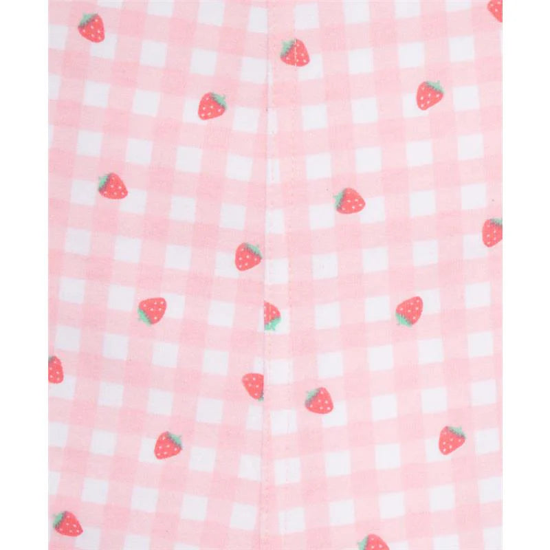She'll look berry sweet in this girls' knit shortall set, featuring the strawberry shortall and a coordinating white t-shirt!