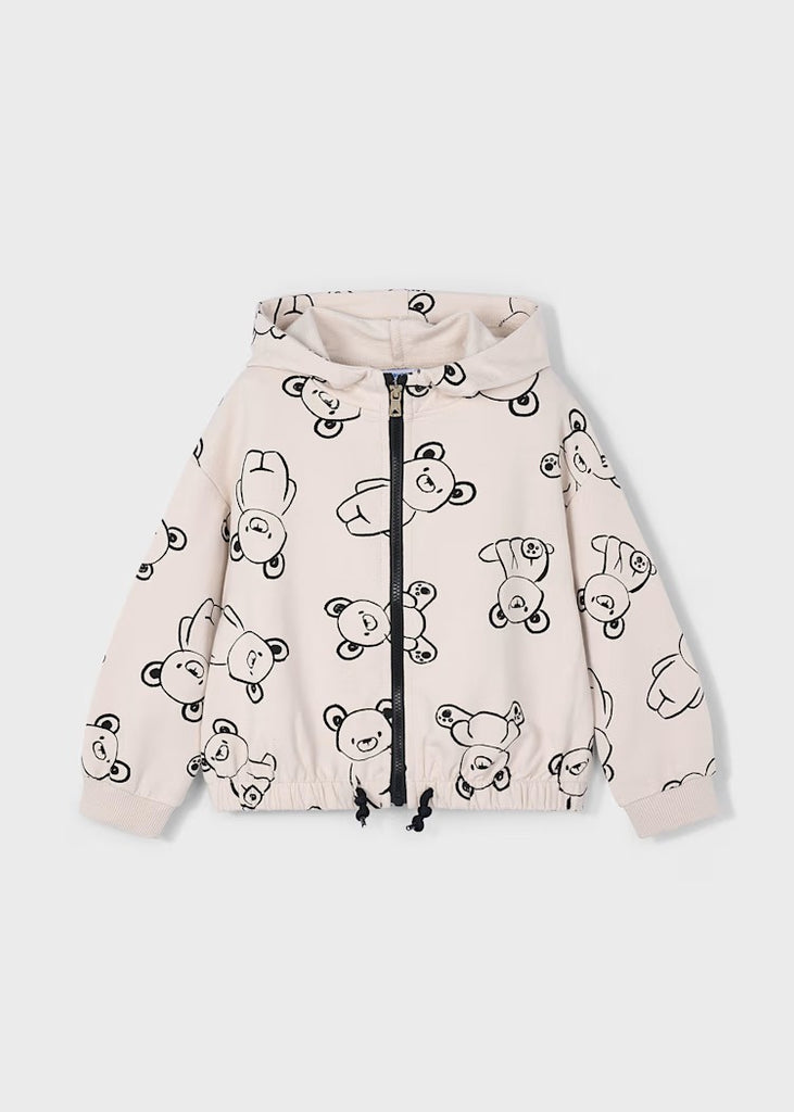 هودي بأكمام طويلة للبنات. ياقة بغطاء للرأس. سحاب أمامي مركزي. تصميم برباط قابل للتعديل في الجزء السفلي لملاءمة أفضل. عناصر زخرفية: طبعة.