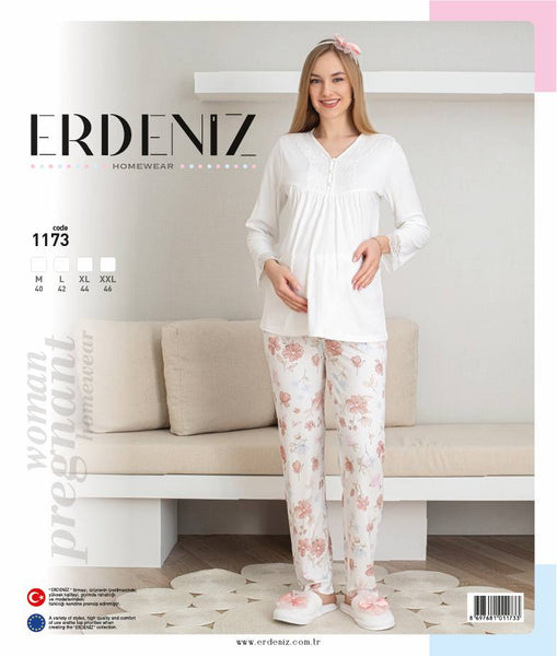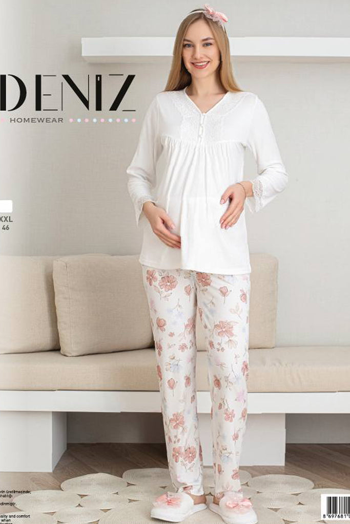 Melisa Pajama Set / 2-Piece Maternity & Pregnancy Set / Short Sleeve, Buttoned Front Pajamas 1173